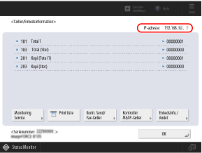 Du kan anvende følgende procedure til at kontrollere IPv4-adressen på skærmen [Tæller/Enhedsinformation].