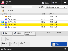 Vælg en fil, og tryk på [Print] nederst på skærmen for at få vist skærmen med udskriftsindstillinger.