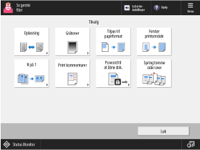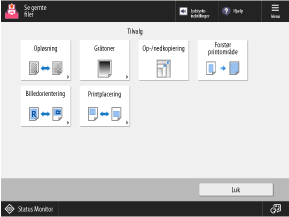 Tryk på knapperne på denne skærm for at konfigurere de detaljerede udskriftsindstillinger. Når udskriftsindstillingerne er konfigurerede, tryk på [Luk] for at vende tilbage til skærmen for udskriftsindstillinger.