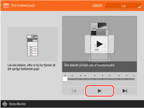 * Skærmen vises gentagne gange, indtil papir- eller hæfteklammestoppet er fjernet. Når du trykker på [Luk], lukker skærmen muligvis midlertidigt, og du kan muligvis udføre en anden handling eller indstilling.