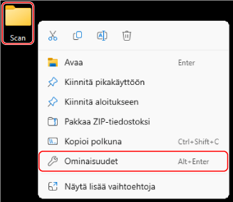Napsauta luotua kansiota hiiren kakkospainikkeella ja valitse [Ominaisuudet].