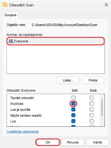 Valitse [Käyttöoikeudet]:lle [Salli] -valintaruutu [Muuta]:lle.