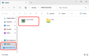 Näyttää tulostinpalvelimen jaetun tulostimen