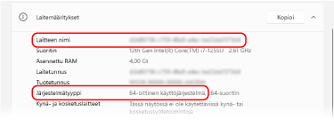Tarkista tietokoneen nimi ja käyttöjärjestelmän versio kohdasta [Laitemääritykset].