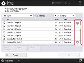 Jos kaikkia luettelon kohteita ei voida näyttää yhdessä näkymässä, voit vaihtaa tai vierittää sivua napauttamalla [