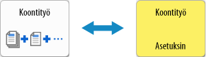 Aina kun napautat toiminnon asetuspainiketta, toiminnon valintatila muuttuu. Kun toiminnon asetuspainike on valittuna, asetuksen tila näkyy painikkeen alaosassa, ja painikkeen väri muuttuu.