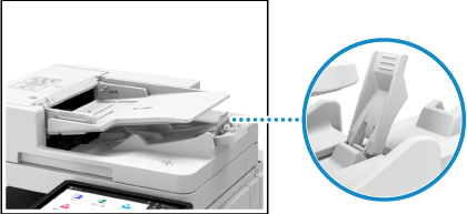 Kun asetat ohuita alkuperäiskappaleita (enintään 52 g/m² (kirjepaperi 14 lb)) tai enintään A6R-kokoisia alkuperäiskappaleita, nosta alkuperäiskappaleiden pysäytin.