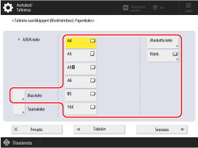 Seuraavat paperikoot näkyvät, kun [Muu koko] painetaan: