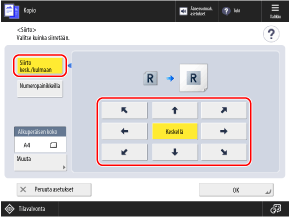 Paina [Siirto kesk./kulmaan] ja määritä suunta alkuperäisen siirtämistä varten painamalla nuolipainiketta tai [Keskellä].