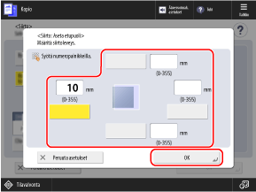 Voit siirtää koko alkuperäisen paikkaa paperin reunaan tai keskelle tai määrittää siirtoetäisyyden millimetreinä.