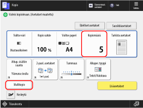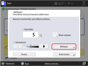 Ennen kuin painat [Aloita tulostus], syötä kopioiden lukumäärä uudelleen numeropainikkeita käyttäen.