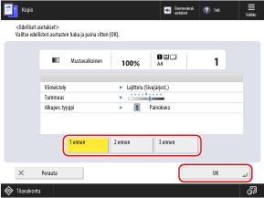 Voit hakea aiemmin kopioinnissa käyttämäsi asetukset painamalla [Edelliset asetukset].