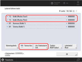 [Laskurin/laitteen tiedot] -näyttö avautuu.