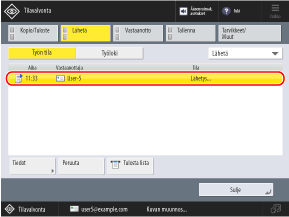 Valitse [Lähetä] tai [Tallenna], ja valitse sitten [Työn tila].