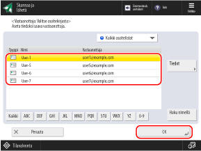 Valitse osoitekirjan näytössä kohde (sähköpostiosoite), joka asetetaan ilmoituksen kohteeksi, ja paina [OK]
