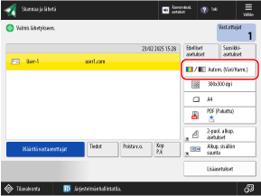 JPEG- ja OOXML-tiedostot on rajoitettu kohteisiin [Autom. (Väri/Harm.)], [Täysväri] ja [Harmaasävy].