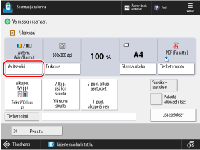 * Kun asetus on [Täysväri], myös mustavalkoiset alkuperäiskappaleet katsotaan väriskannauksiksi.