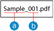 Tämä sivunumero lisätään tiedostonimen loppuun. (Lähetettäessä käytetään viisinumeroista lukua ja tallennettaessa kolminumeroista lukua.)