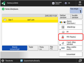 Et voi määrittää tätä asetusta ja lähettää tiedostoa, kun PDF-tiedoston salaus on asetettu samaan aikaan.