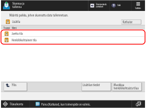 Tallennuskohde näkyy laitteen käyttöpaneelissa, joten voit vahvistaa tallennuskohteen ja tallentaa skannatut tiedot.