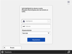 Käyttäjät kirjautuvat syöttämällä käyttäjänimensä ja salasanansa käyttöpaneelin näppäimistöllä. Jos käyttäjätunnus ja salasana koostuvat vain numeroista, voit määrittää asetukset sallimaan kirjautumisen pelkillä numeronäppäimillä.