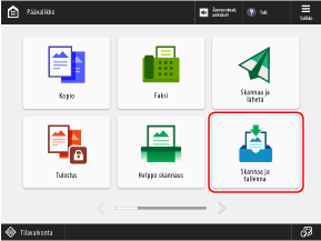 Skannaa asiakirja laitteella käyttöpaneelin [Skannaa ja tallenna] -näytön kohdasta [Päävalikko] ja tallenna skannatut tiedot postilaatikkoon.