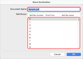 Kohdassa [Job Processing] valitse [Store] ja napsauta [OK].