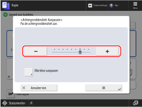 Als de schuifregelaar wordt weergegeven zoals hieronder, drukt u op de knop [+] of [-] om de schuifregelaar naar rechts of links te verplaatsen.
