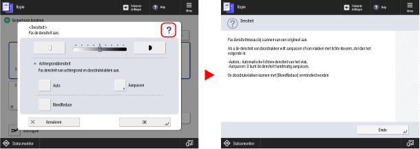 Druk op [Einde] op het hulpscherm om af te sluiten en terug te keren naar het vorige scherm.
