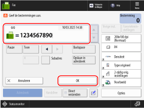 * Als het TX-logboek is beperkt, zodat alleen aangemelde gebruikers toegang hebben tot hun eigen taken in het logboek, meldt u zich aan bij de machine voordat u bestemmingen opvraagt en opgeeft vanuit het TX-logboek van de aangemelde gebruiker.