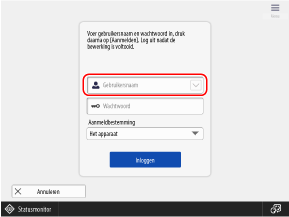 Als de machine een geschiedenis van eerder ingelogde gebruikersnamen heeft, kunt u ook de gebruikersnaam uit het vervolgkeuzemenu selecteren.