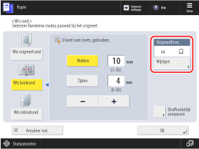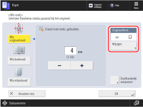 Druk op [Wijzigen], selecteer het formaat van het origineel en druk op [OK].