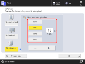 *Als [Wis inbindrand] is ingesteld, worden de drie randen behalve de rand met de ponsgaten altijd gewist met een kader van 4 mm (1/8 inch).