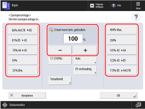 Selecteer een vaste kopieerverhouding uit de lijst of voer een aangepaste kopieerverhouding in.