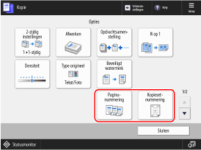 Voegt kopieersetnummers toe (om de volgorde van de kopieersets aan te geven) tijdens het kopiëren. Deze kunnen voor elke kopieset als controlenummers worden gebruikt.