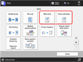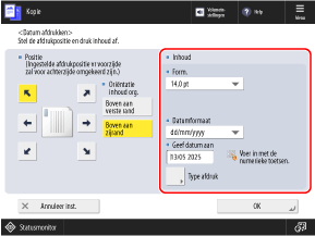 Voegt de datum (jaar, maand en dag) toe bij het kopiëren. U kunt de af te drukken datum opgeven.