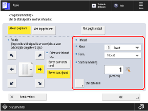 U kunt op [Stel details in] drukken en de instellingen configureren om een aangepaste tekenreeks aan de paginanummers toe te voegen of het bereik van de af te drukken pagina's op te geven.