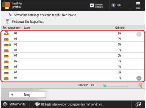 U kunt de pictogrammen voor de status van elk Vertrouwelijk faxinbox controleren.