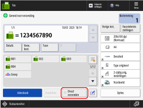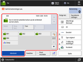 De fax kan naar een verkeerde bestemming worden verzonden als de instelling van de bestemming voor de eerder verzonden fax blijft bestaan. Stel de instelling opnieuw in voordat u de bewerking uitvoert.