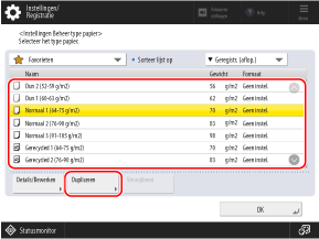 Selecteer een papiertype uit de lijst en druk op [Dupliceren].