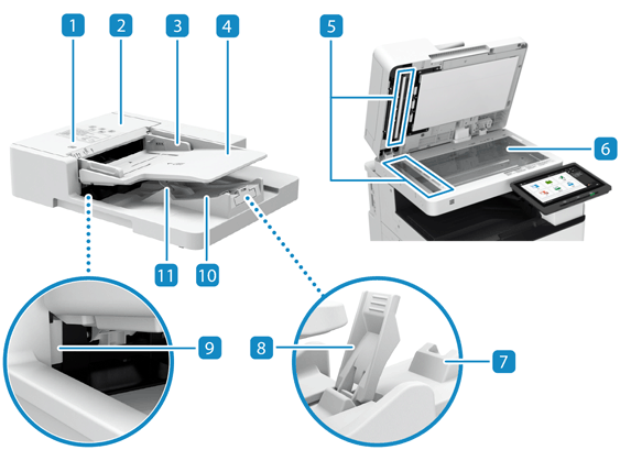 Hier geplaatste originelen worden automatisch in de aanvoer ingevoerd. Wanneer u twee of meer vellen plaatst, kunnen originelen achter elkaar worden gescand.