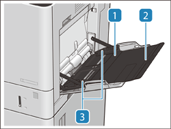 Stel de papiergeleiders exact af op de breedte van het geplaatste papier, zodat het papier mooi recht in de machine wordt gevoerd. Druk op het bovenste gedeelte van de linkergeleider en verschuif hem.