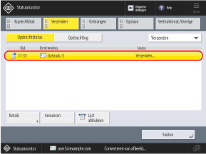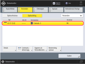 Druk op [Verzenden] of [Opslaan] en druk vervolgens op [Opdrachtstatus].