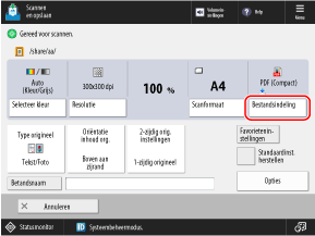 Druk op het scanscherm op de instellingenknop van het bestandsformaat.