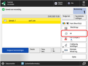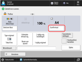 Druk in het scanscherm op de knop voor het instellen van het origineelformaat.