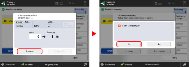 Volg de instructies op het scherm om het scannen met deze machine te annuleren.