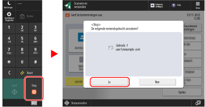 Als [ Stop] wordt ingedrukt wanneer er meerdere verzendopdrachten zijn