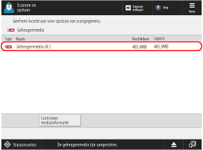 U kunt op [Controleer mediainformatie] drukken, het USB-geheugenapparaat selecteren en vervolgens op [Details] drukken om het serienummer en de beschikbare capaciteit van het USB-geheugenapparaat te controleren.