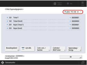 U kunt ook de volgende procedure gebruiken om het IPv4-adres op het scherm [Teller/Apparaatgegevens] te controleren.