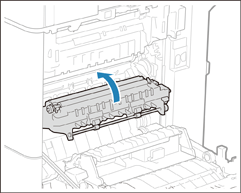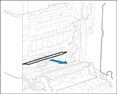 Als er papier is vastgelopen, trekt u dit voorzichtig naar buiten in de richting van de pijl.